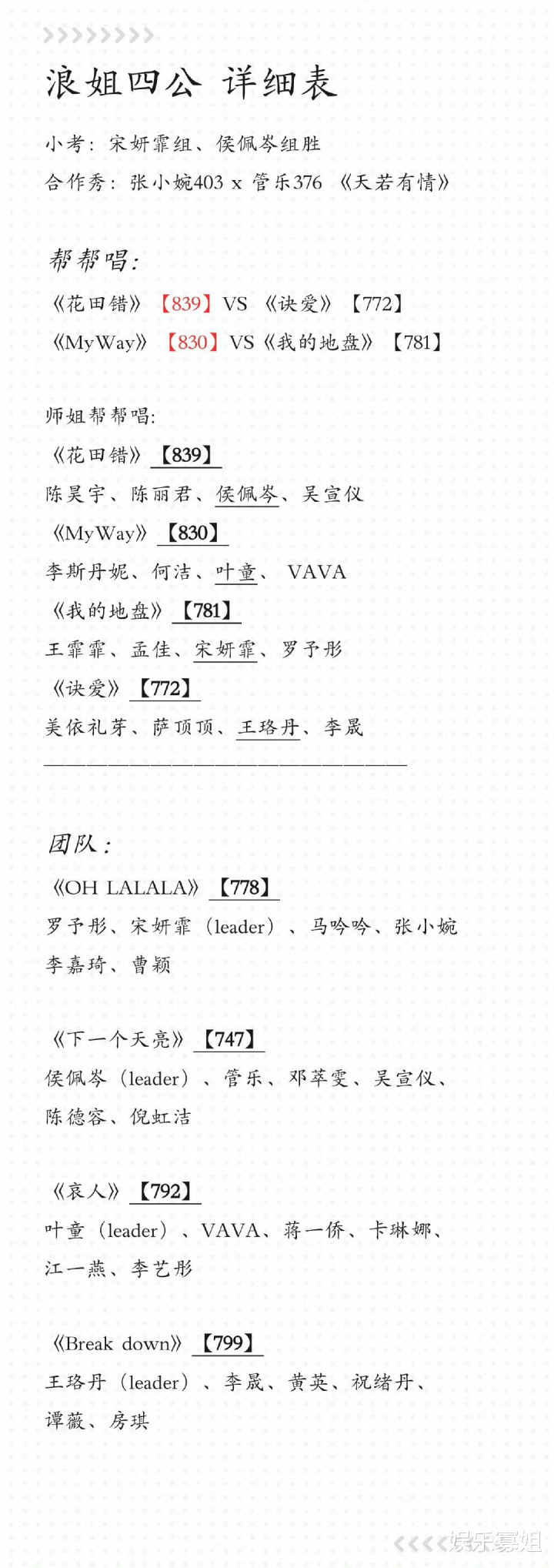 嗨!这里是娱乐寡姐,为你带来最新娱乐资讯。网传《乘风2025》四公结果,侯佩岑、吴宣仪、陈昊宇、陈丽君组《花田错》舞台839分,是浪姐目前整季最高分!赢了王珞丹组的《诀爱》;叶童、vava、李斯丹妮、何洁组《My way》舞台以第二高分的830赢了宋妍霏、罗予彤、王霏霏、孟佳组《我的地盘》舞台。